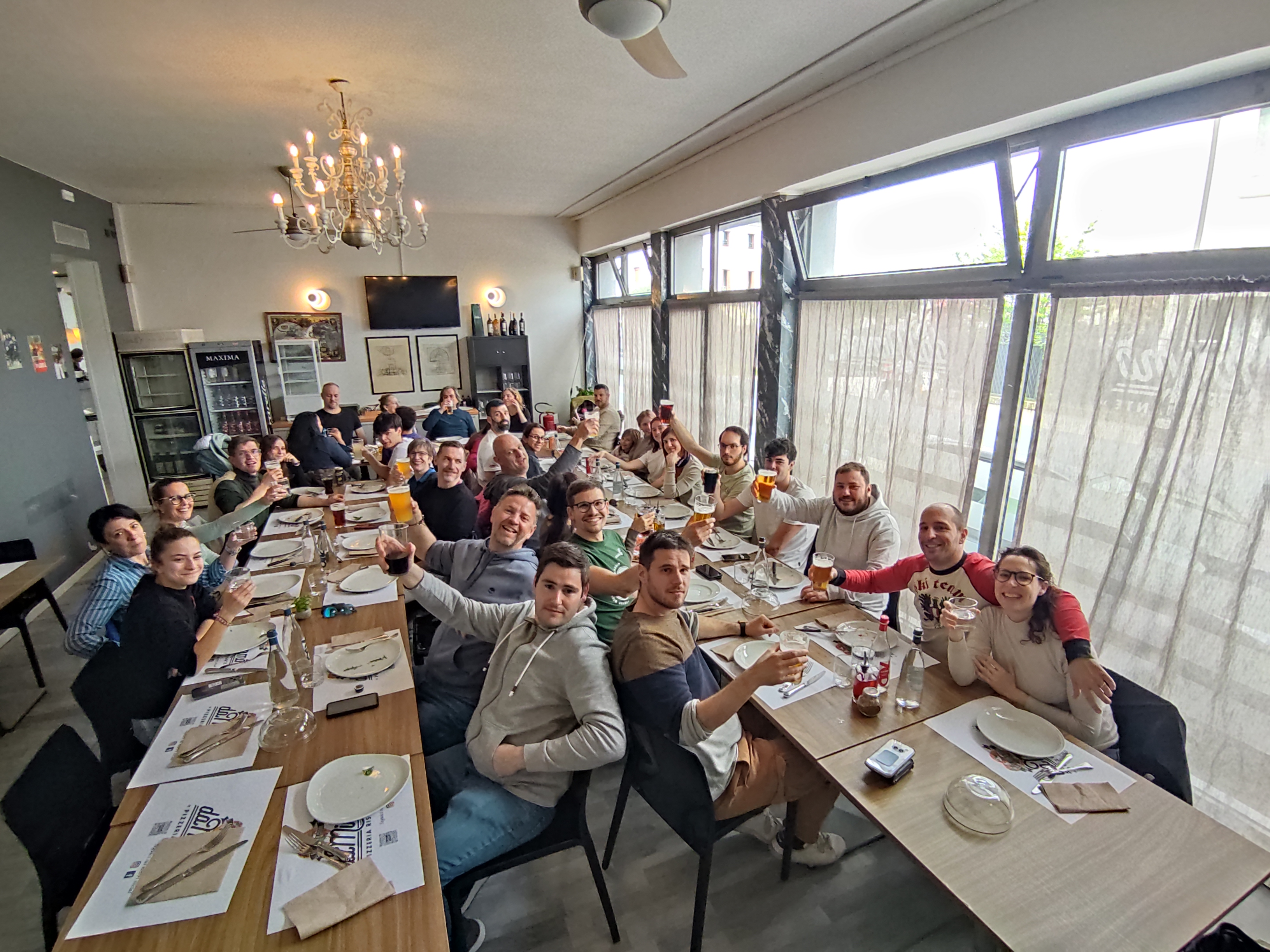 Dopo il sudore, arriva la gloria… e l’ovetto sodo di Fede! Aperitivo insolito ma ormai sacro. Poi via verso Fiera di Treviso da Mimmo, dove ci aspettavano delle pizze così buone da far dimenticare ogni fatica. La pizzeria era tutta per noi e tra chiacchiere, risate e aneddoti post-partita sembrava di essere a una cena di gala (con molto più rumore!).