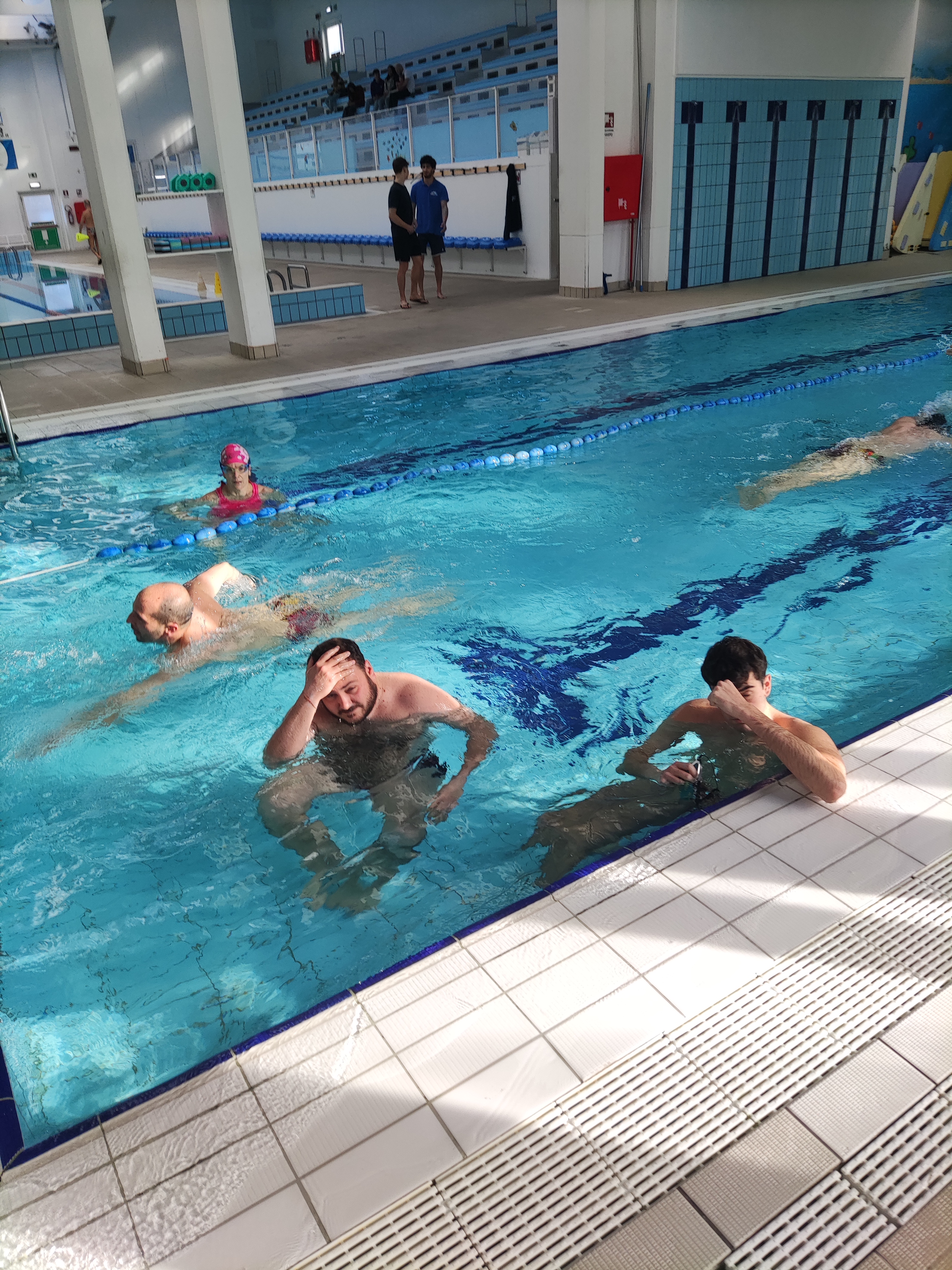 Dopo i primi due tempi, la partita era una vera e propria battaglia acquatica: botta e risposta, nuotate da urlo e adrenalina a mille. Stavamo per portarla a casa, ma forse l’emozione (o la fame, chi lo sa!) ci ha distratti proprio sul più bello. Alla fine abbiamo dovuto lasciare la vittoria ai nostri valorosi avversari. Ma nessun muso lungo: avevamo un’altra sfida da giocare!