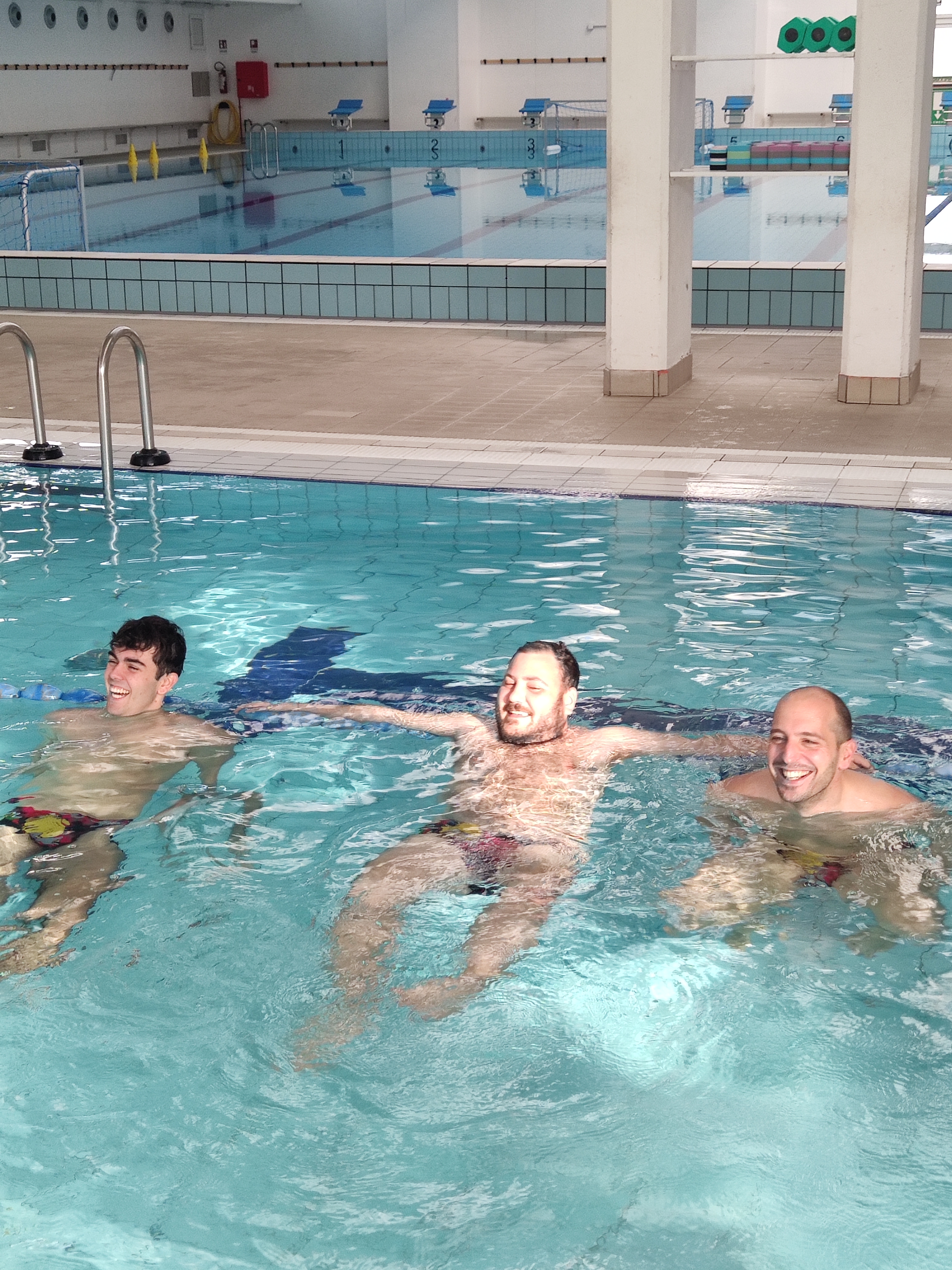 Ma appena si aprono le porte, via dentro per un bel riscaldamento! Coach Bruce prende in mano la situazione, ci sistema come pedine strategiche e ci dà gli ultimi accorgimenti per entrare in acqua agguerriti. Pronti, partenza... splash!